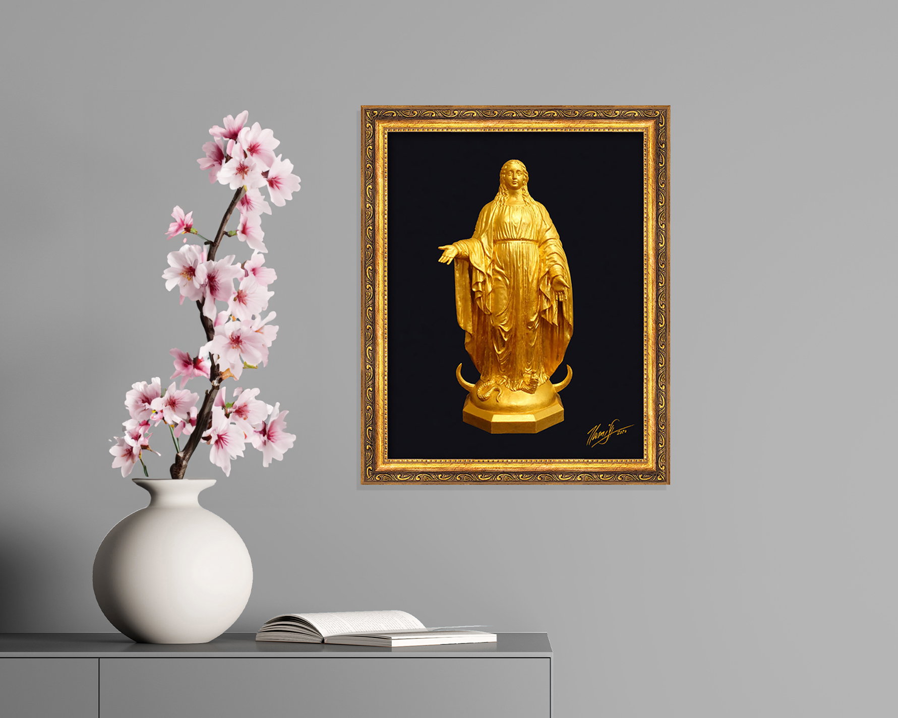 In 2010, the University of Notre Dame commissioned Kamish to recreate the sculpture of Our Mother that crowns the Golden Dome. His 42-inch bronze, gilded in 23.75k gold, is now on display in two locations: the Development Offices and the Morris Inn.